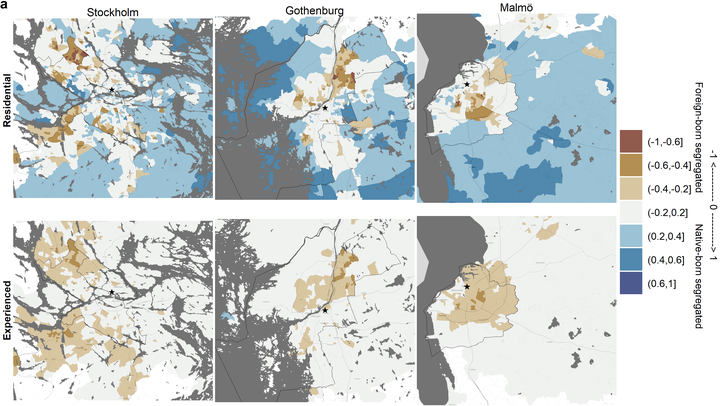 Segregation hinders inclusive cities and persists in everyday activities outside homes, yet the contributions of pivotal factors remain insufficiently quantified. Here, we elucidate how different factors influence outside-home segregation, looking at the distinctive segregation experienced by native and foreign-born segregated individuals, using data from ~320,000 smartphone devices collected in Sweden. We find that while day-to-day activities lead to mixing for native-born majorities, foreign-born minorities remain segregated in their out-of-home activities. Our results highlight two factors for foreign-born segregated individuals, who (i) tend to visit same-group destinations (homophily), and (ii) have limited mobility ranges (limited travel). Counterfactual simulations further reveal that homophily alone, as represented by destination preference, plays a minor role, while combined with limited mobility, restricts foreign-born minorities' exposure to diverse groups, which is linked to limited public transport access. Enhancing transport accessibility for foreign-born minorities could potentially reduce social segregation.
